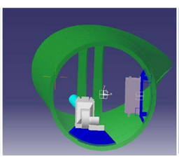 氣流方向如紅色、黃色箭頭所指。加熱時(shí)葉片腔內(nèi)氣流通過加熱后沿紅色箭頭所指方向通過玻璃鋼通風(fēng)管吹向葉尖位置,氣流從葉尖通過與腹板形成的風(fēng)道形成完整的空氣循環(huán)流動(dòng)路線,腔內(nèi)空氣的循環(huán)加熱可以有效加熱葉片結(jié)冰區(qū)域(從12米到45米)并兼顧葉片后緣和葉根段,達(dá)到葉片防、除冰效果。
